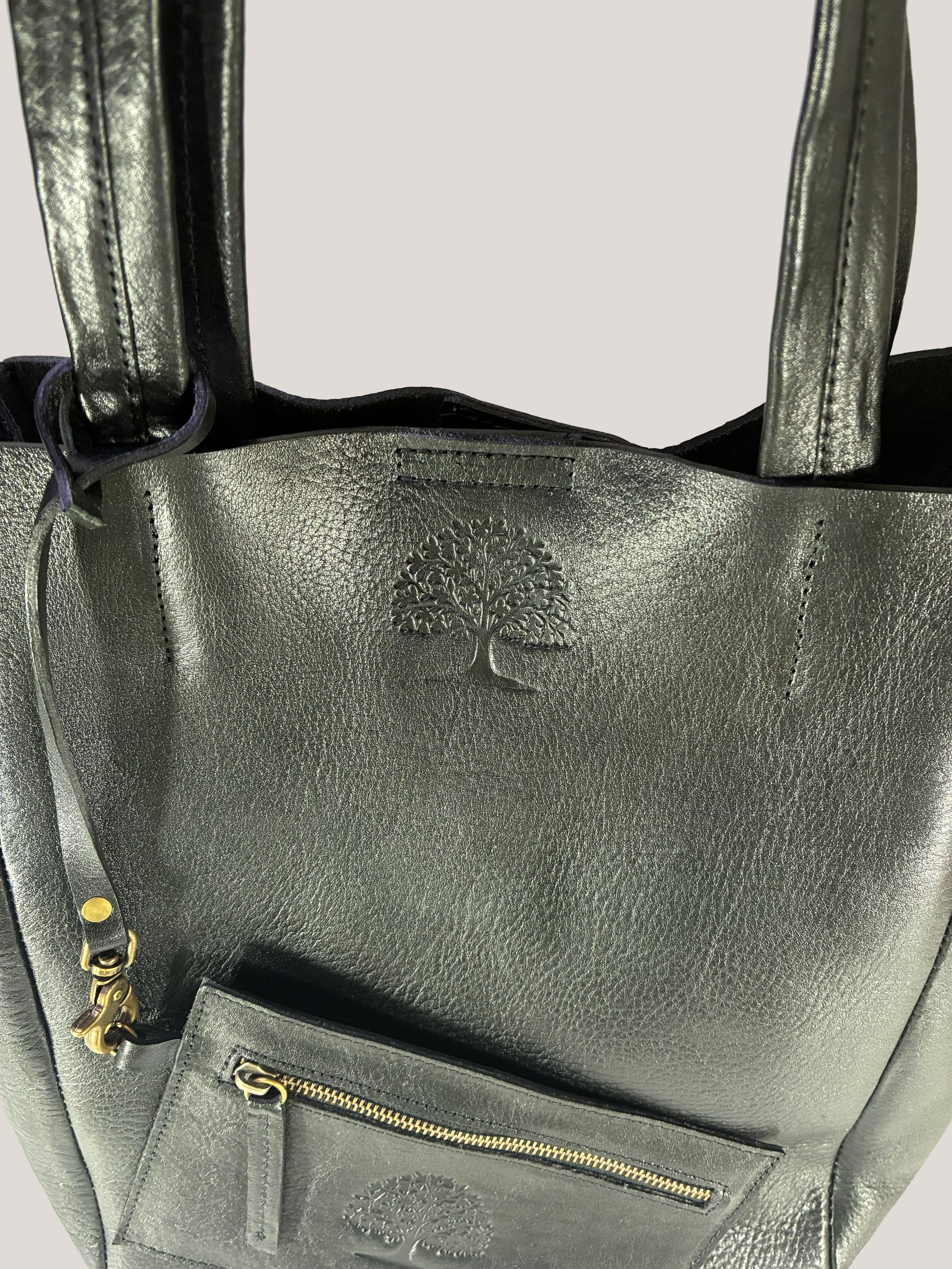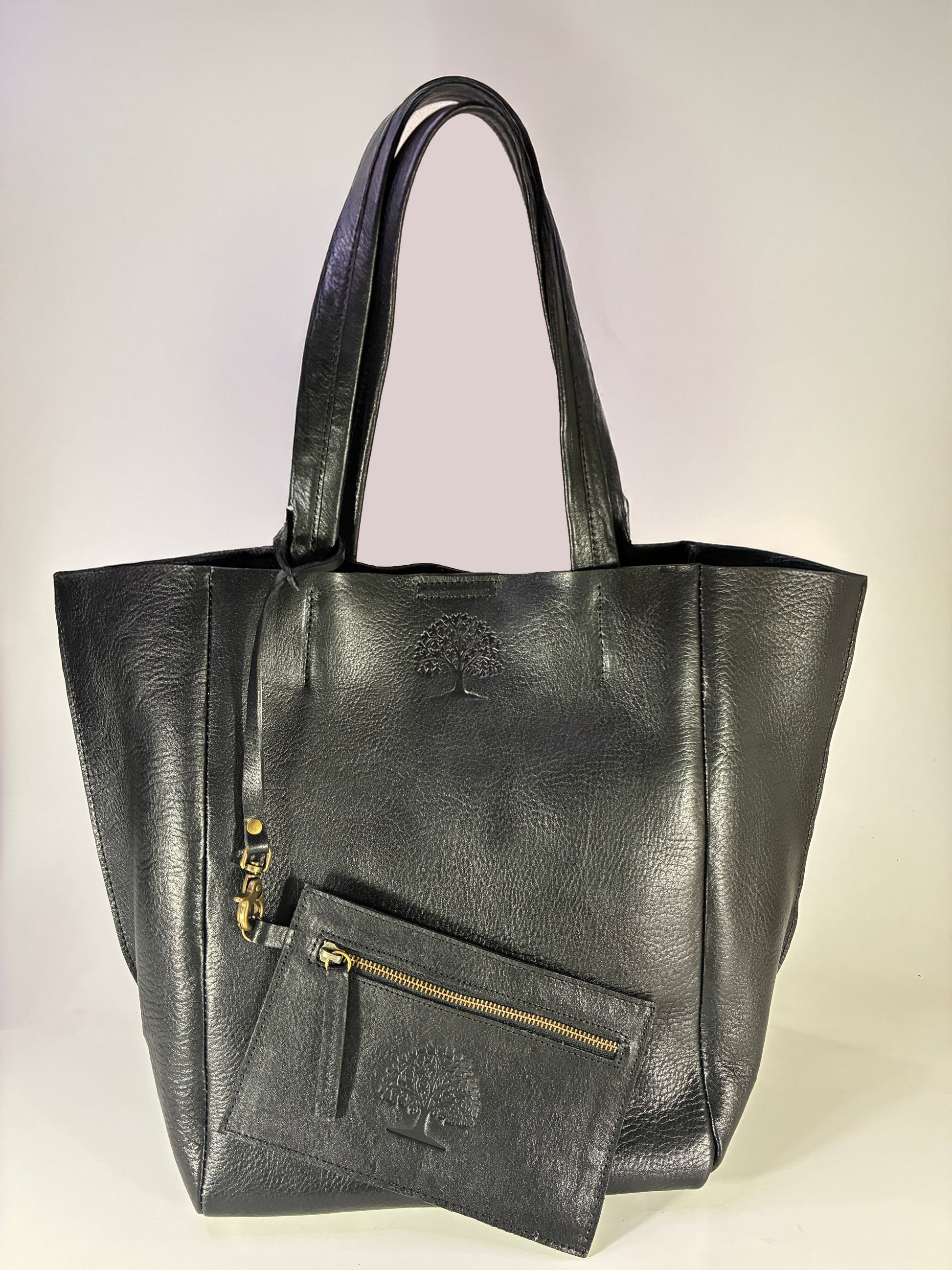 Tote de cuero vacuno color negro.