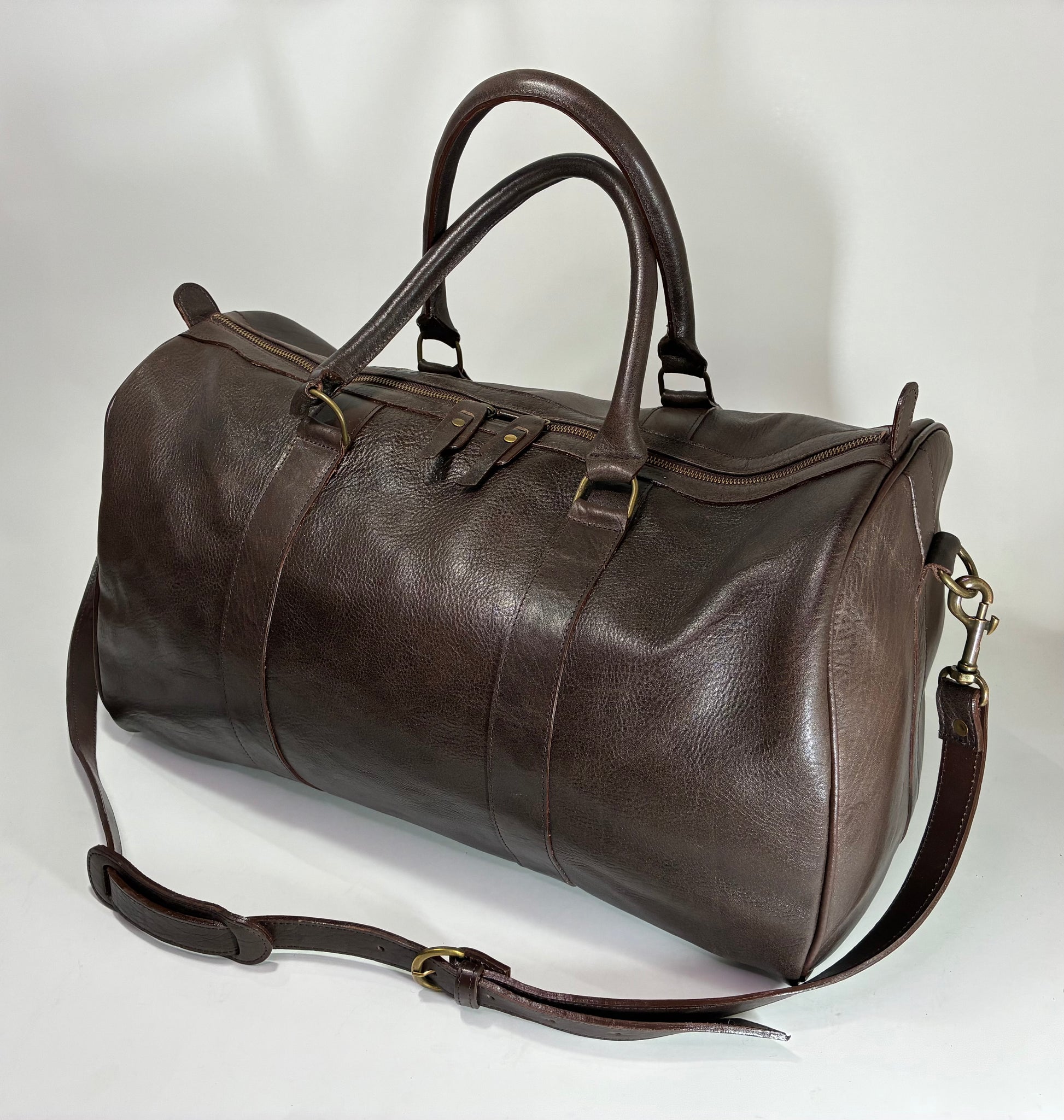 Doble cierre reforzado. Forro interno de lona. Manijas cortas. Correa larga ajustable y desmontable. Bolsillo interno.